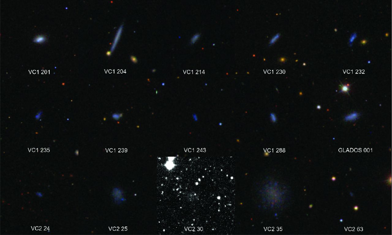 All of these pathetic little scraps of starlight sit on the TF relation just fine - even VC2_30 (bottom centre), which looks more like someone's sneezed on the lens than a proper galaxy. They have at least a hundred times less mass than giant objects, but they all obey the same relation. The fact that the truly dark objects don't follow this correlation, whereas the merely extremely dim ones do, marks them out as categorically different.