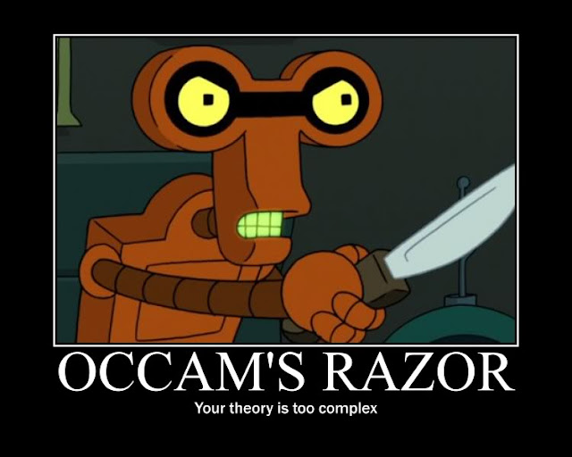 Note also that these other more accurate versions are far less decisive than Jodie Fosters. In particular, entities must not be multiplied beyond necessity. Making things too simple can be as disastrous as making them too complicated. If your simple explanation doesn't work then it can be entirely legitimate to add complexity. The Razor just says that you should minimise complexity, not that you should never add any at all.
