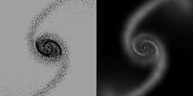 It seems appropriate to start with a (very) brief history of numerical simulations. The image below shows the very first extragalactic simulation. Before you scroll down (or click on the link), have a guess as to when it was performed. I'll give you a clue : it was earlier than the 1980's.