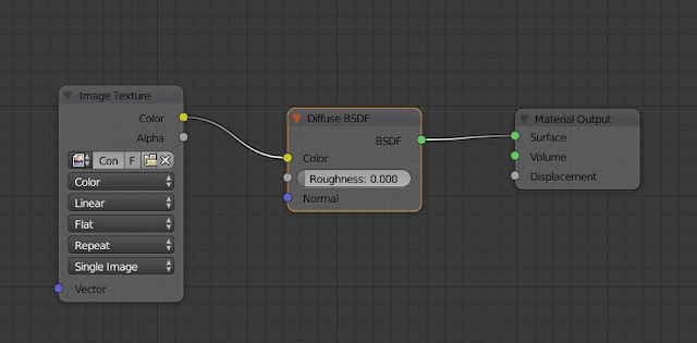Fortunately if you do just want to set the colour, that's easy. You can click on the colour picker in the Diffuse node and set it there directly. Or, more usefully, you can generate the colour from other nodes (in very complex combinations) and use that as the input to the node. Let's start with an image texture node : Shift+A -> Texture -> Image Texture. Use the file selector in the Image Texture node to choose the image file to use. Then connect the Image Texture node to the Diffuse node by clicking on its colour output socket and dragging the line to the input colour socket of the Diffuse node.