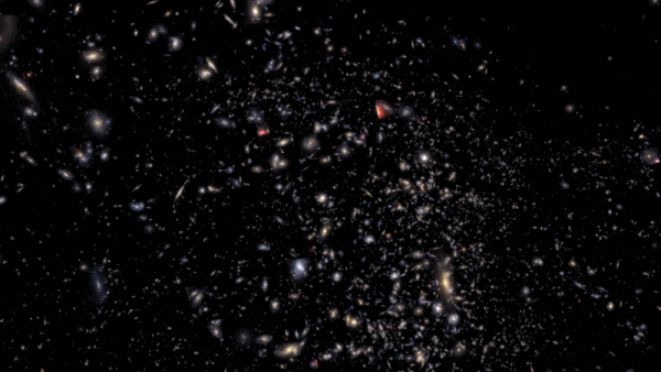 One thing there was no need to compromise was the structures visible in the galaxies. Each of the 23,935 galaxies in the video is represented by an optical image of the actual galaxy seen at its location. This is pretty unusual - many of these large-scale videos often just use a few hundred template images. Here, there are unique images of every single blasted one. Don't believe me ? Here's the complete sample.