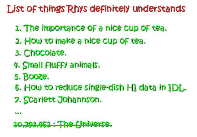 Follow the reluctant adventures in the life of a Welsh astrophysicist sent around the world for some reason, wherein I photograph potatoes and destroy galaxies in the name of science. And don't forget about my website, www.rhysy.net