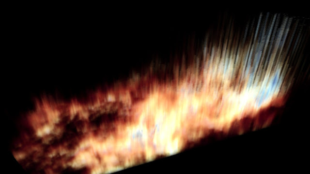 This sequence worked out far better than I dared hope. Blender can't automatically displace spherical textures - they have to be UV mapped for this to work. But all it is is the colourised LAB data displacing a sphere. Originally I just wanted to show the hydrogen as an object, something you could conceivably hold rather than a place you could visit. I found than the interior of the sphere looked so much more interesting than I'd anticipated I abandoned my original idea and went for pure surrealism. This uses a wide angle camera moving on a complex orbit, together with distance clipping and an reflecting icosphere for the background. There are just two meshes in this scene, but it looks like so much more.